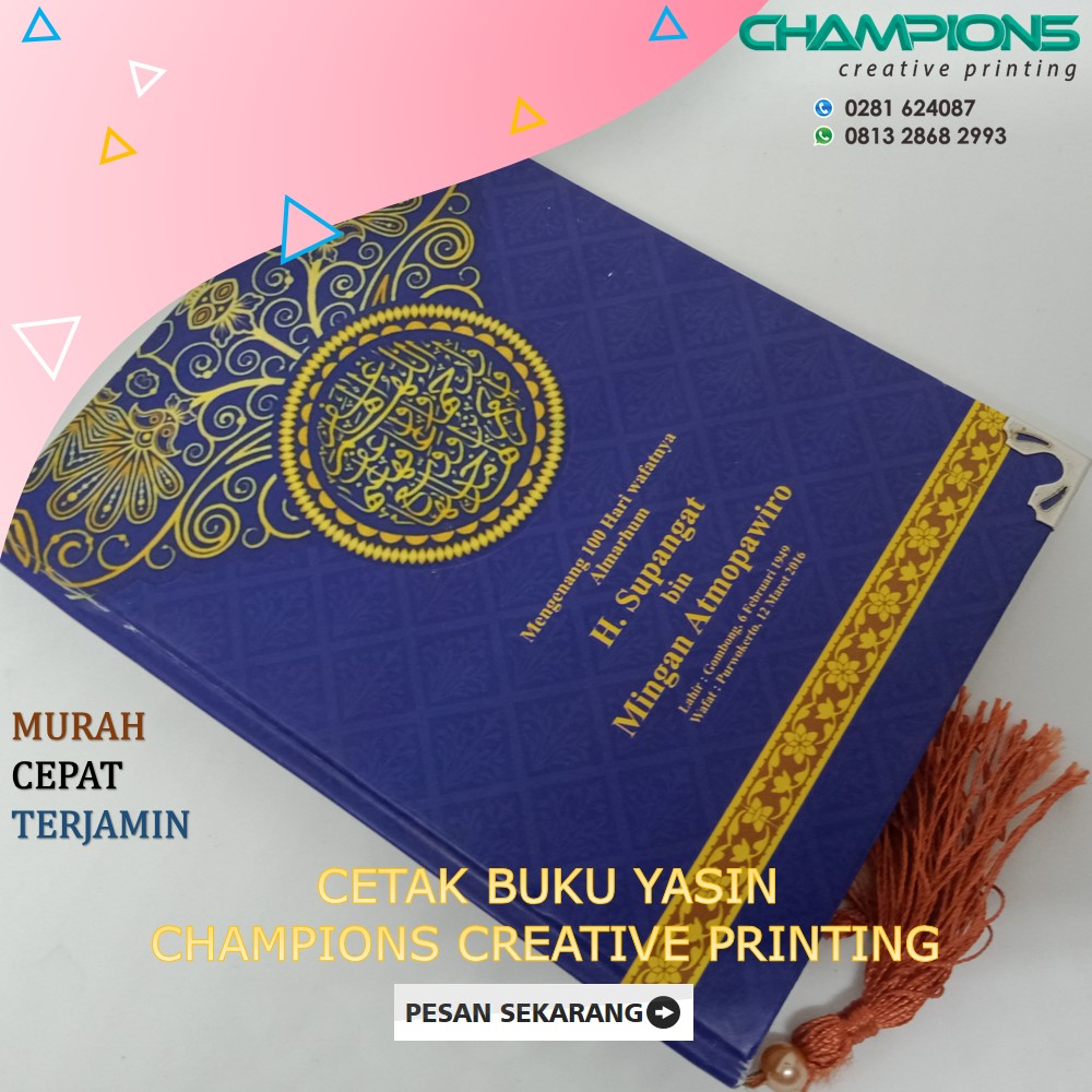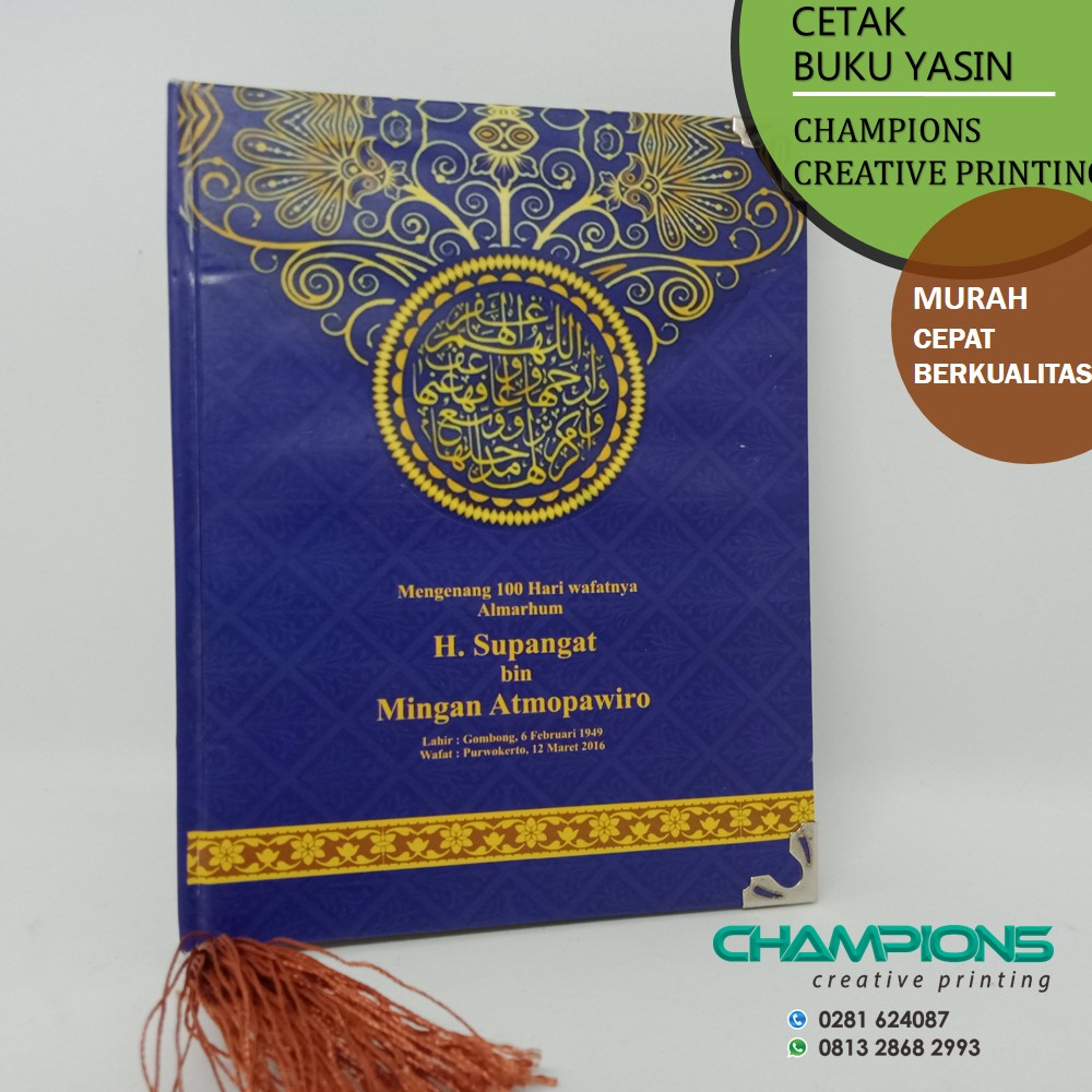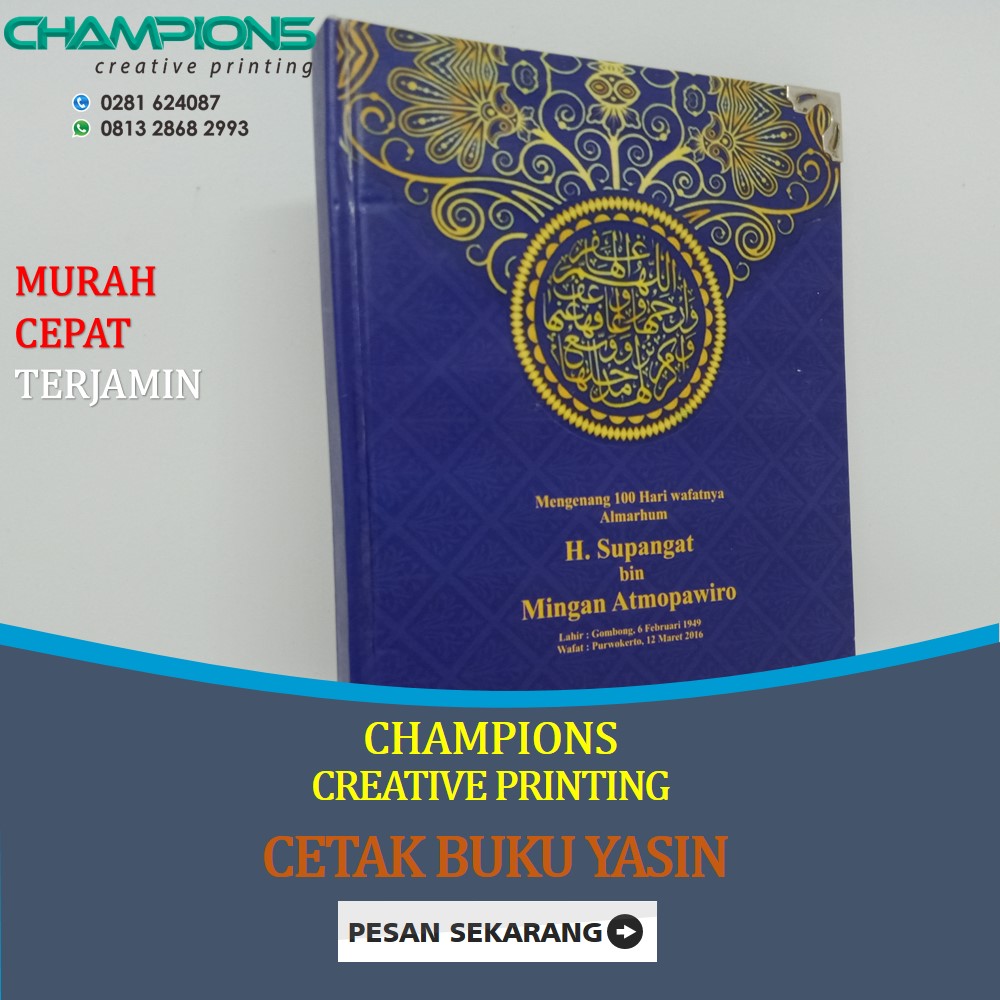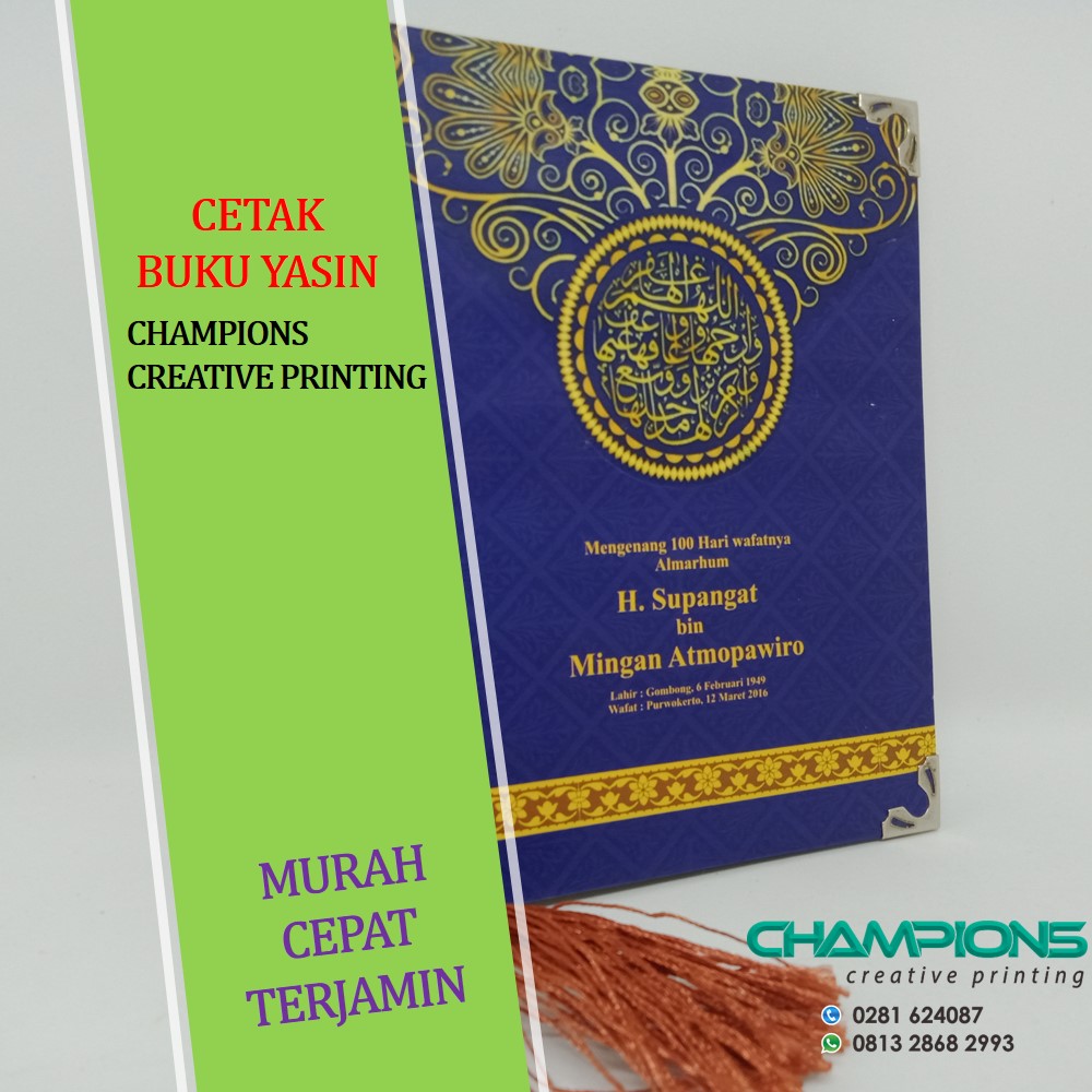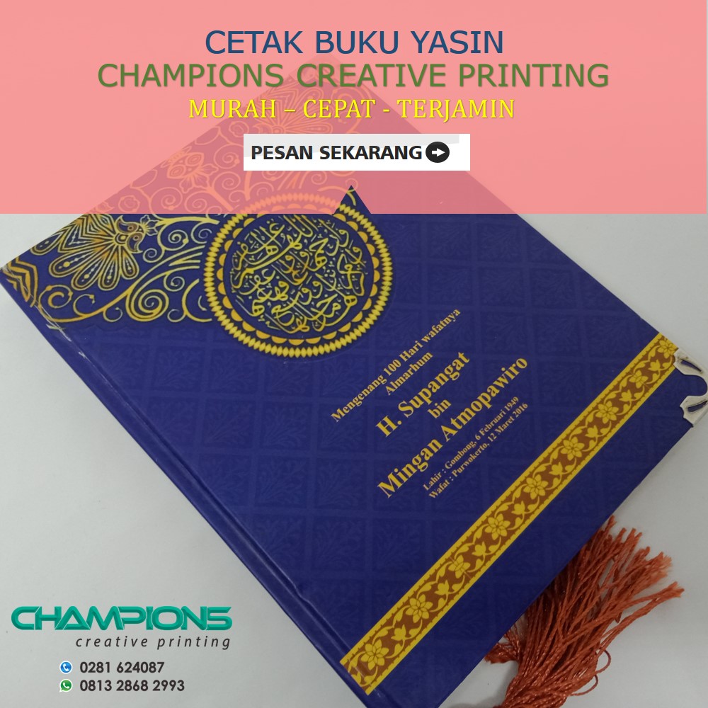 CHAMPIONS Creative Printing adalah Pusat Percetakan yang Melayani Bikin Online Blangko Buku Yasin dan Tahlil dengan Harga Murah Di Kecamatan Padamara, Pengadegan, Kota Kabupaten Purbalingga